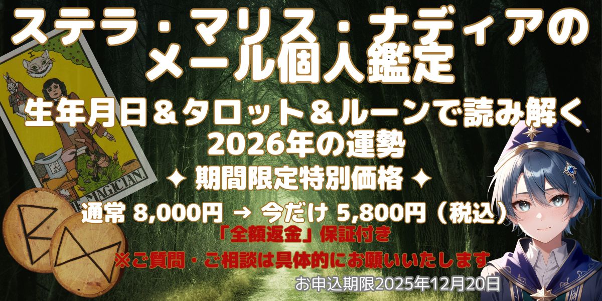 ※【期間限定】生年月日&ルーン&タロットで読み解くあなたの2026年占いは、11月末まで期間限定割引価格枠あり!