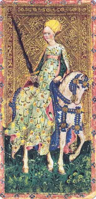 最愛だったはずの奥方に濡れ衣を着せ処刑してしまうようなフィリッポ・マリア・ヴィスコンティという公爵は、果たしてこのように一族の女性らしき象徴を絢爛に描く、ということをするような人物なのだろうか、つまり、ヴィスコンティ・タロットのオーナーなのだろうか……?