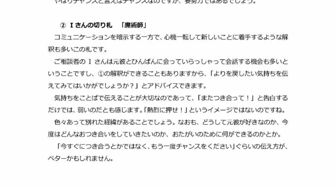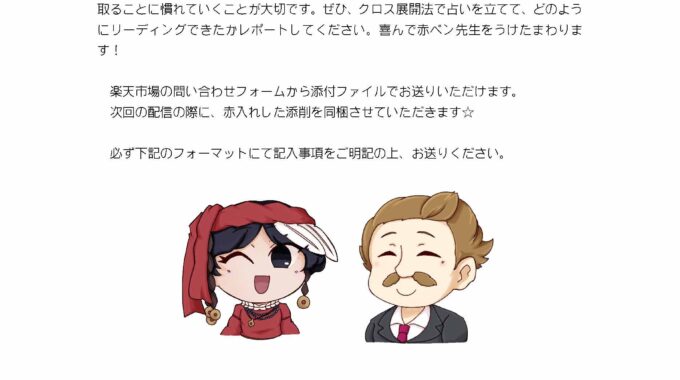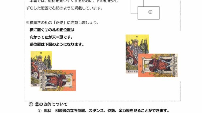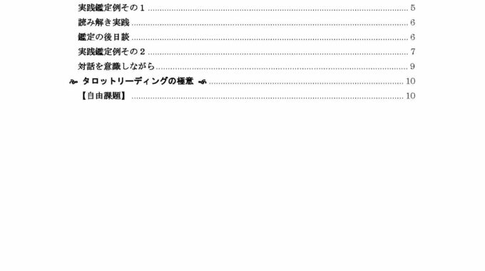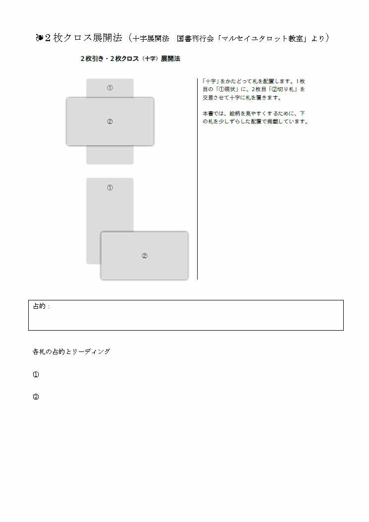 2025-05-06 / 最終更新日時 : 2025-09-19 ステラ管理者 ウェイトタロットマスターコース タロットのトリセツその2 二枚で展開する十字スプレッド 以上、スライドショーでご覧になっていただきましたが、いかがでしょうか? まず、ご遠慮なくご意見、ご感想、ご質問などこちらのコメント欄からでもOKOKでございますし、展開用紙を用いての自主課題の提出も、お待ちしております! 必ず展開用紙のフォーマットを参考に、ご自身の読み解き、どこが難しく、どこがわかりづらいでしょうか、具体的にご質問ください。 お待ちしております☆彡 ご不明な点・わかりづらい点など何なりとご質問ください いつでもどんなときでも、どこからでも何なりとお待ちしております 印刷する 🖨X コメントを残す コメントをキャンセルメールアドレスが公開されることはありません。 ※ が付いている欄は必須項目ですコメント ※ 名前 ※ メール ※ サイト 次回のコメントで使用するためブラウザーに自分の名前、メールアドレス、サイトを保存する。 Δ