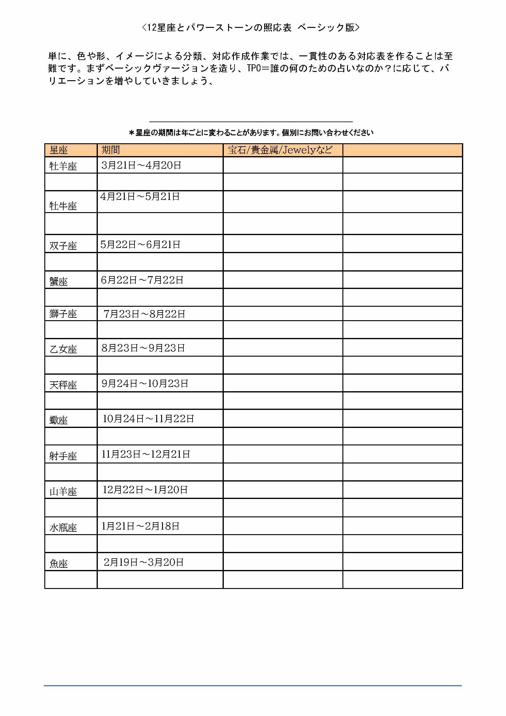 2025-04-04 / 最終更新日時 : 2025-04-04 ステラ管理者 12星座とパワーストーン表ブランクforStreetacademy X コメントを残す コメントをキャンセルメールアドレスが公開されることはありません。 ※ が付いている欄は必須項目ですコメント ※ 名前 ※ メール ※ サイト 次回のコメントで使用するためブラウザーに自分の名前、メールアドレス、サイトを保存する。 Δ